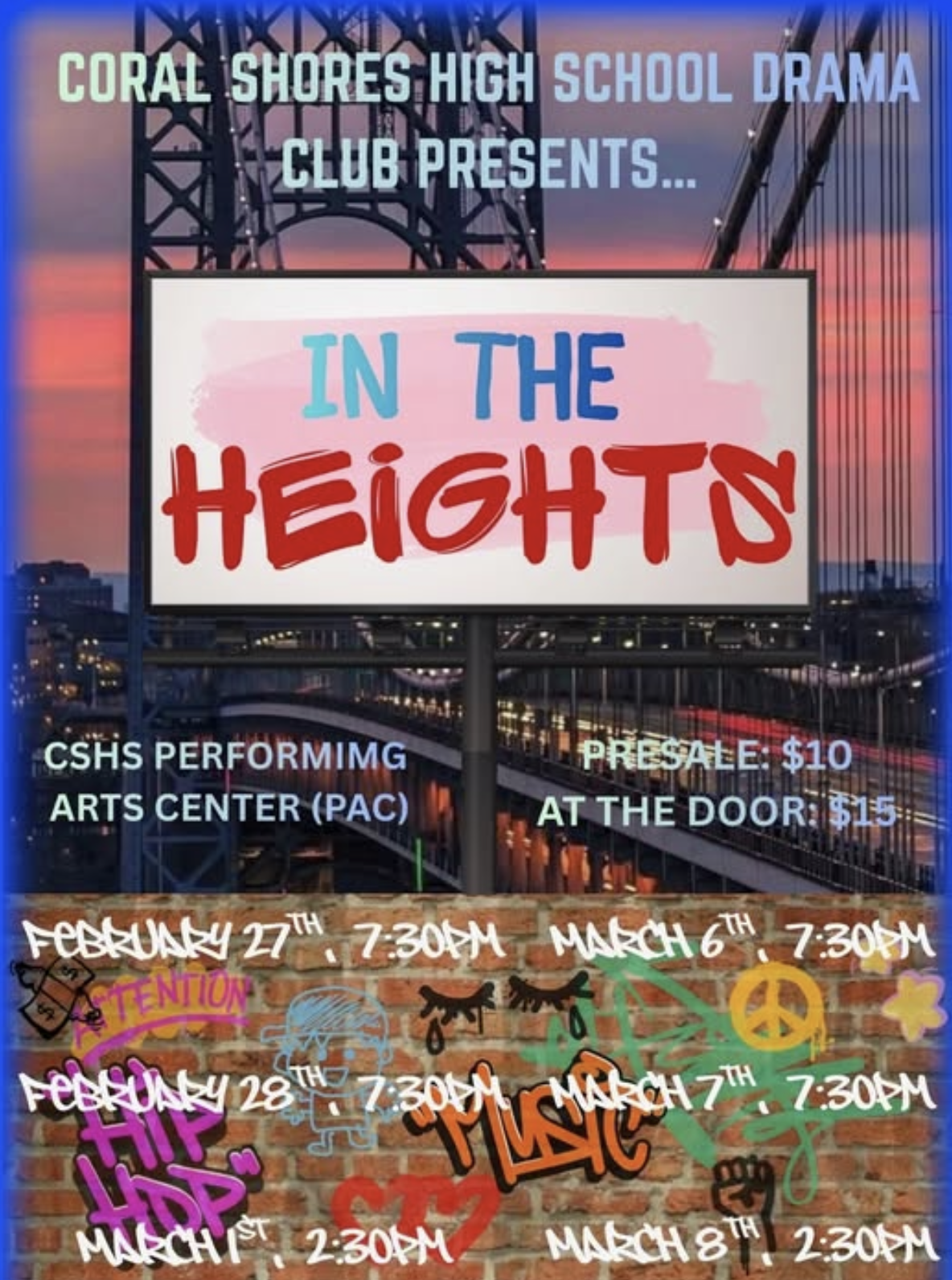 Get ready for vibrant rhythms and heartfelt stories as the Coral Shores High School Drama Club presents In the Heights, a heartfelt musical celebrating community and life in Washington Heights. This spring production promises to be an unforgettable showcase of talent, heart, and cultural pride.
