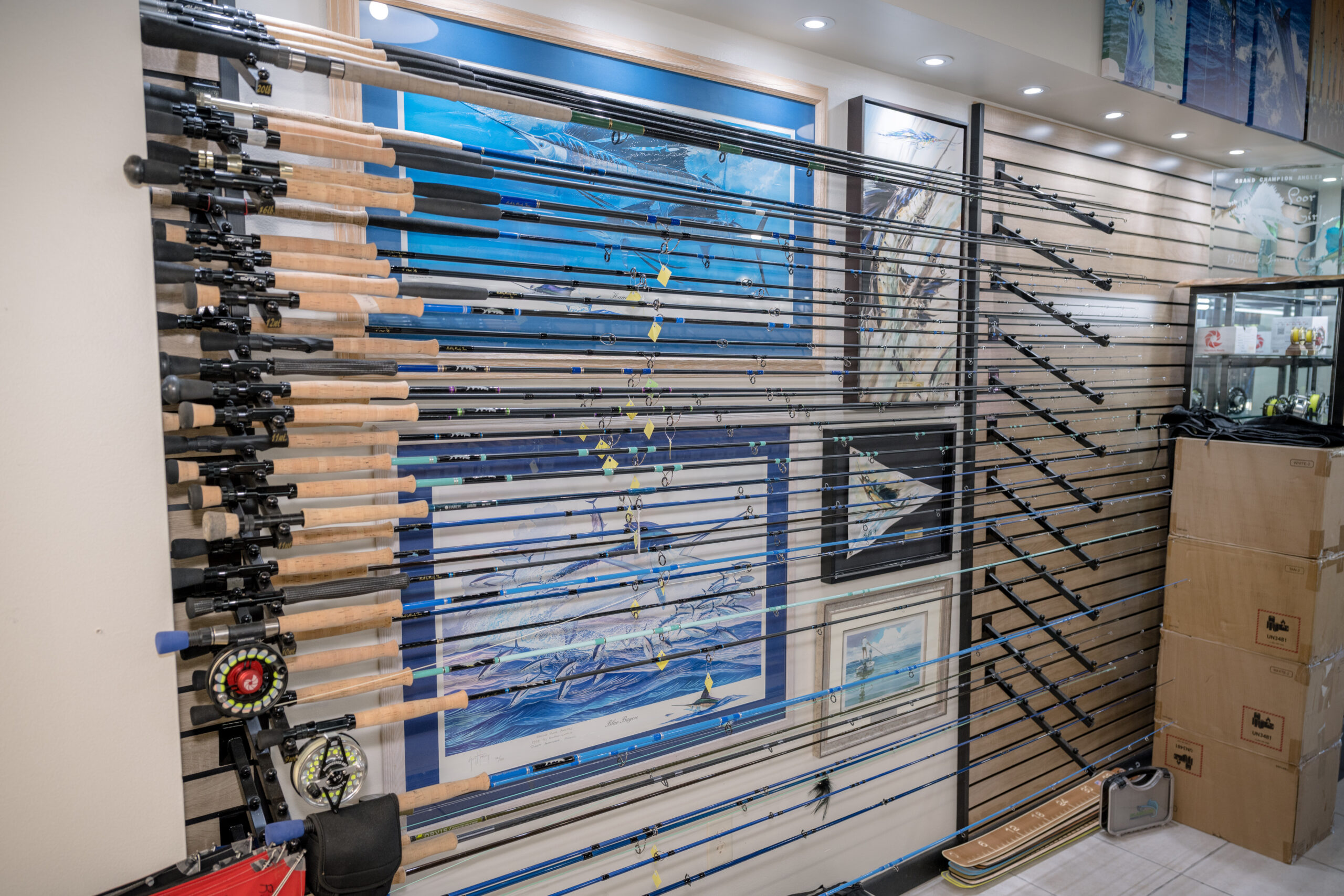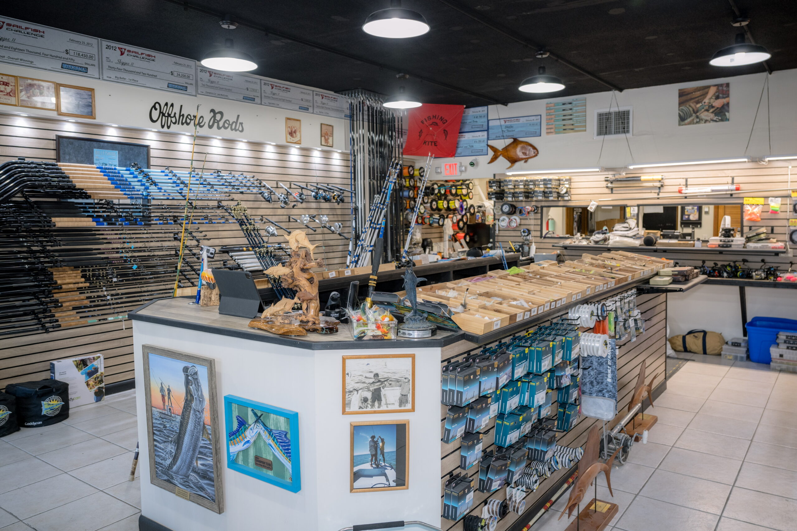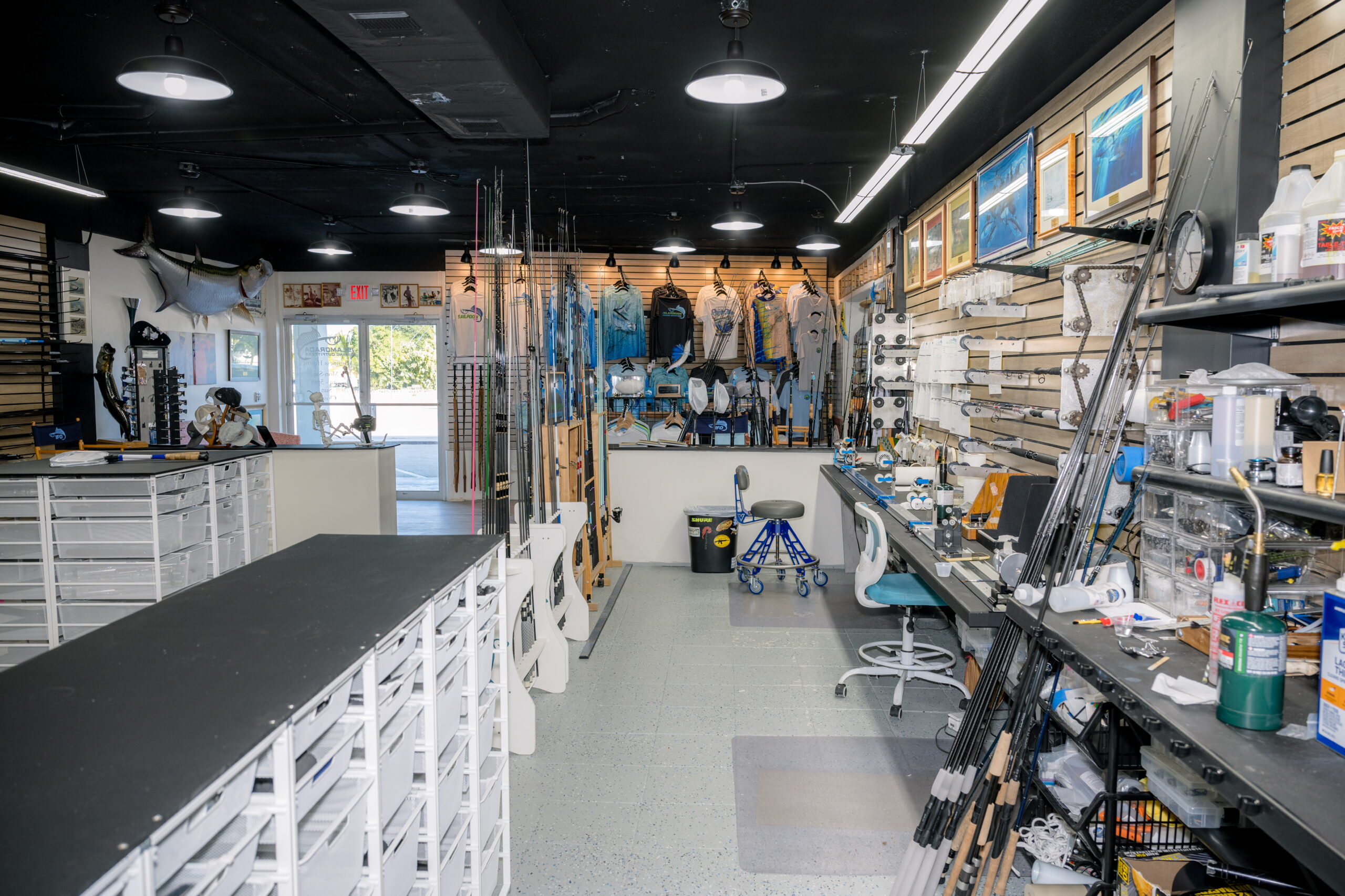Walk into Islamorada Fishing Outfitters today, and you enter through what Randy calls “the factory side.” To your right, a wall displays branded shirts, hats, and the best fishing sunglasses, but it’s what’s ahead that stops people in their tracks.
